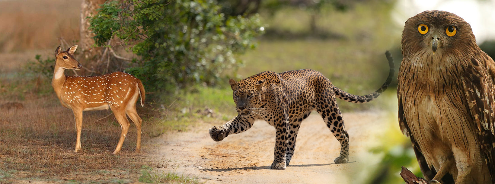 Wilpattu National Park’s varying natural habitats; coastal belt, natural lakes (villus), rocky outcrops, scrublands, open grasslands and dense forest provide for numerous species of animals. Among the species are 31 mammals. The biggest draws in Wilpattu are Leopards (Panthera pardus kotiya) and Sloth bears (Melursus ursinus). Apart from those two mammals are Asian Elephants (Elephas maximus), Spotted Deer, Barking Deer, jackals, sambhur, barking deer, mouse deer Wild Pig, Water Buffalo (Bubalus bubalis) and Mugger Crocodiles.