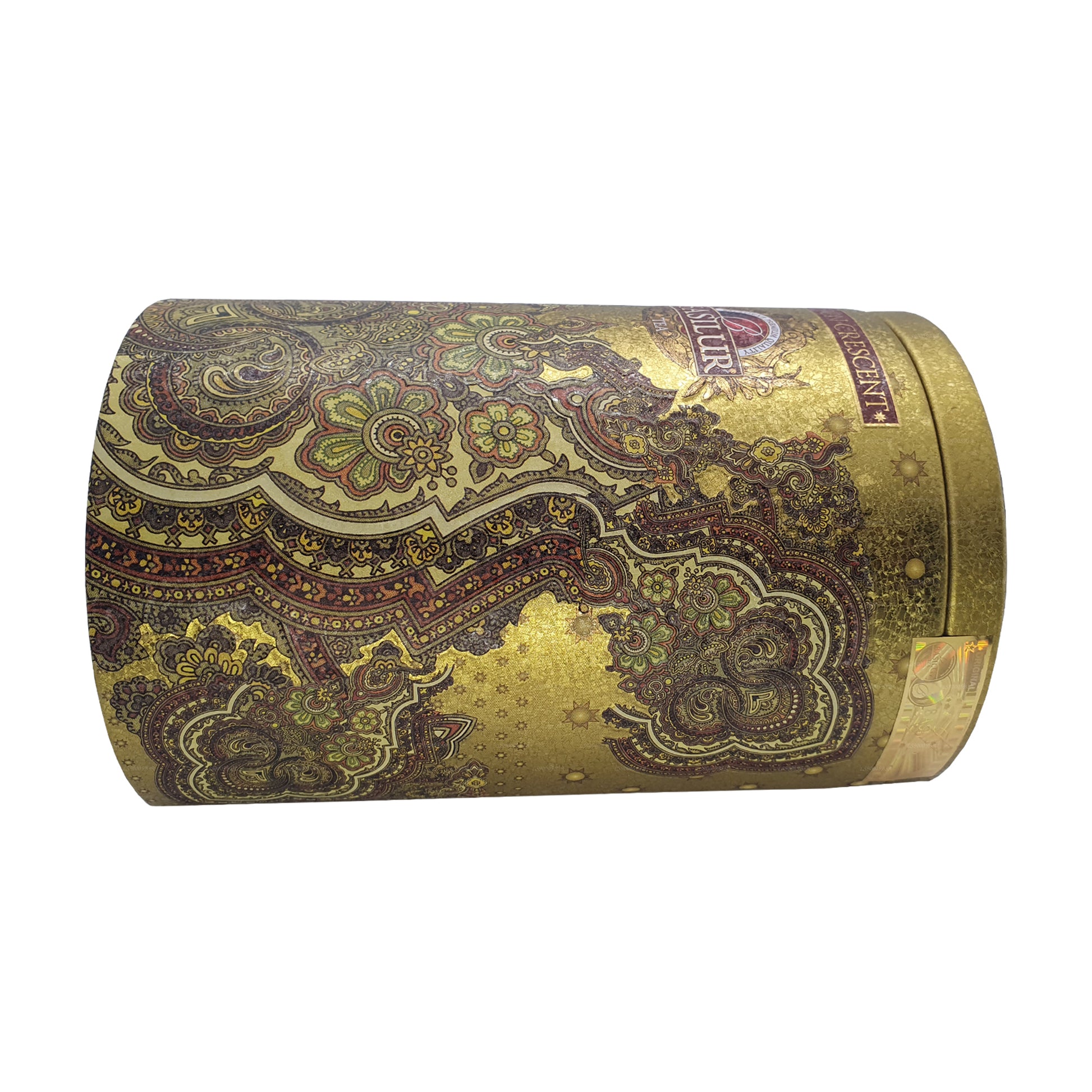 The Basilur Oriental "Golden Crescent" Caddy is a 100g package of tea from the Basilur brand. It's part of their Oriental Collection and typically features a blend of high-quality Ceylon black tea with delicate flavors and aromas. The "Golden Crescent" Caddy often comes in an elegant and decorative tin or caddy, making it ideal for gifting or storing tea in style.