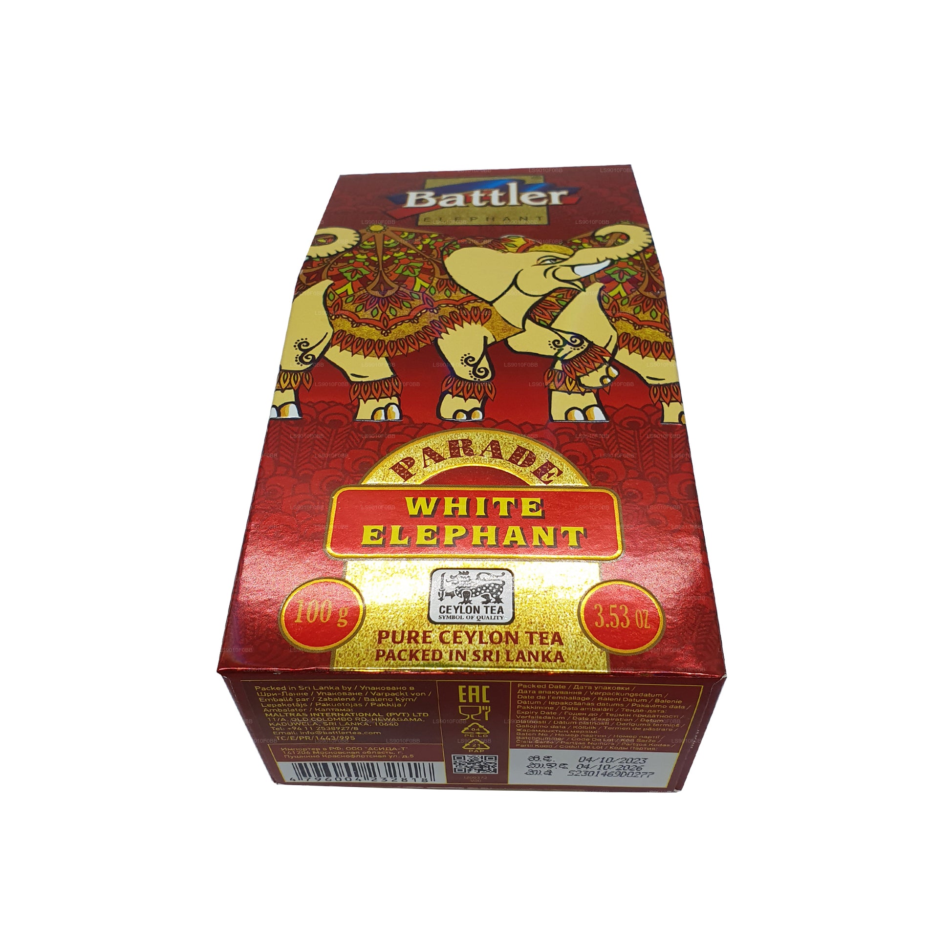Battler Parade White Elephant Loose Leaf Tea (100g) is crafted with premium PEKOE-grade Ceylon black tea, offering a smooth, medium, bodied brew with a rich amber liquor. This exquisite tea is packed in a 100g loose leaf carton, sealed in an aluminum foil pouch to preserve its refined freshness and aroma. Known for its full flavor and balanced profile, Battler Parade White Elephant delivers an authentic Ceylon tea experience, perfect for those who appreciate quality and sophistication in every cup.