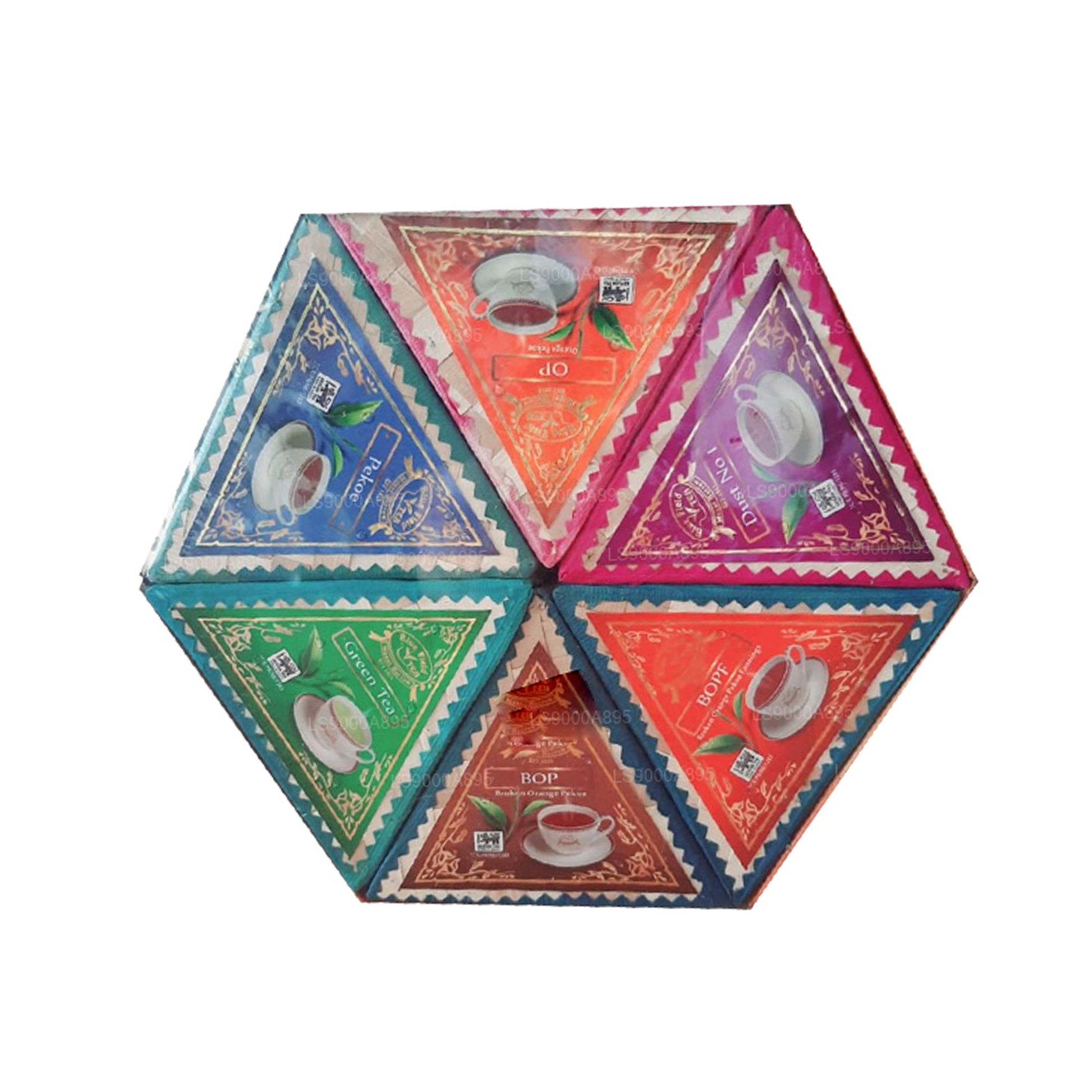 Explore the Reed Hexagon Collection from Bluefield, which elegantly showcases six distinct tea varieties, each encased in a 150g Leaf Pack. This premium collection spans the spectrum from the robust depths of DUST NO 01 and BOPF to the refined lightness of GREEN TEA, offering a tea experience that satisfies every preference. Packaged to maintain optimal freshness and presented with visual flair, this set is perfect for anyone eager to indulge in the rich heritage and diverse flavors of expertly selected, high-quality teas.