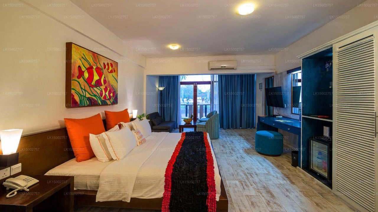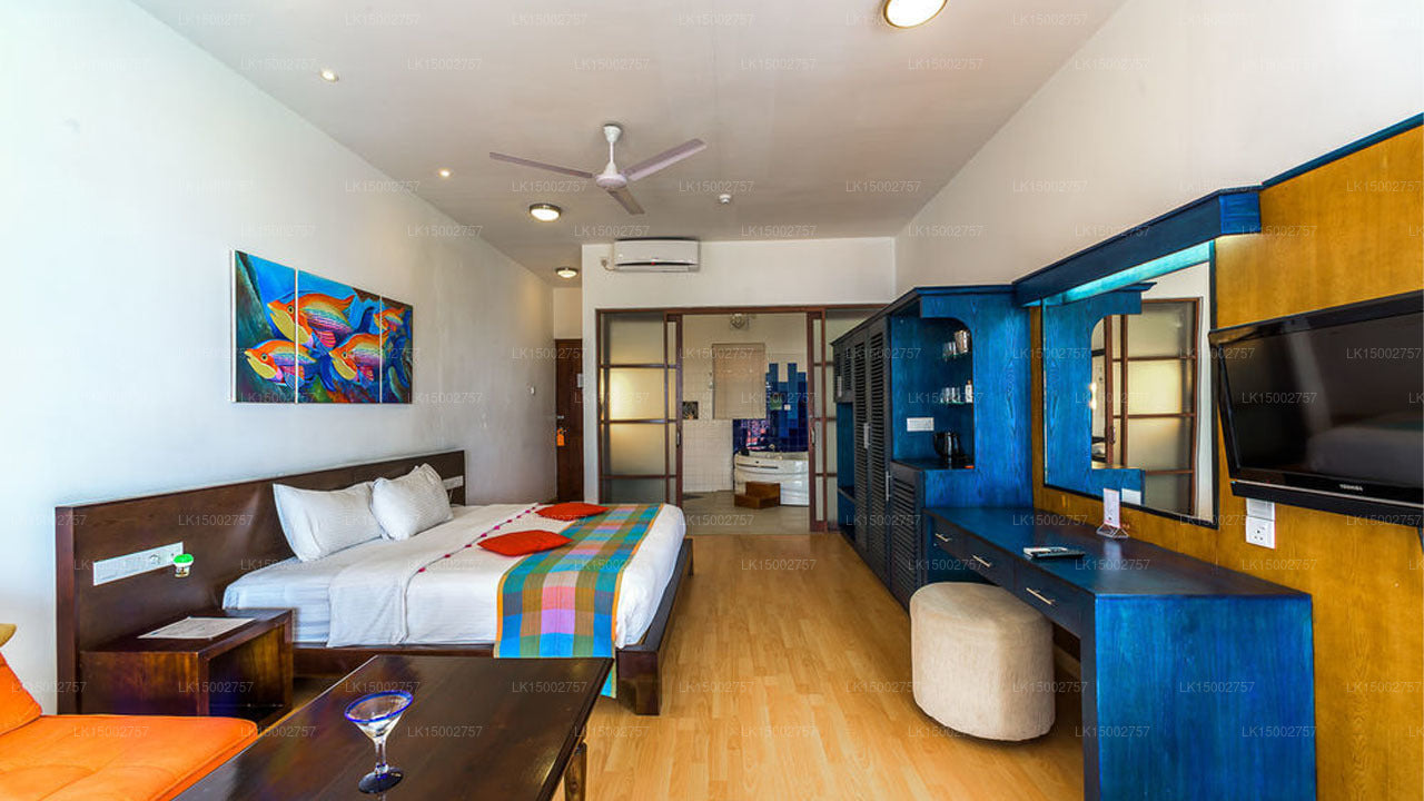 (SKU: LK15002757)Calamander Unawatuna Beach is a picturesque beachfront resort located in Unawatuna, Sri Lanka, known for its beautiful setting and excellent amenities