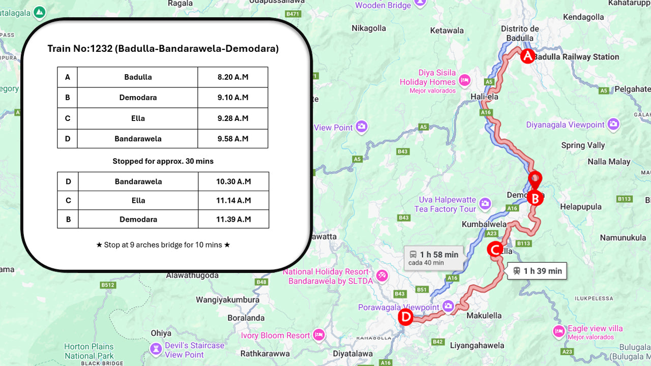 Experience the breathtaking beauty of Sri Lanka's hill country aboard the Calypso Tourist Train Ride. Train No:1232 (Badulla - Demodara) and Train No:1234 (Demodara - Badulla) offer a scenic journey through lush tea estates, misty mountains, and iconic bridges like the Nine Arches. With panoramic windows and a relaxed pace, this ride immerses travelers in nature’s charm, making it a must-do experience for nature lovers and photography enthusiasts exploring the island’s heartland.
