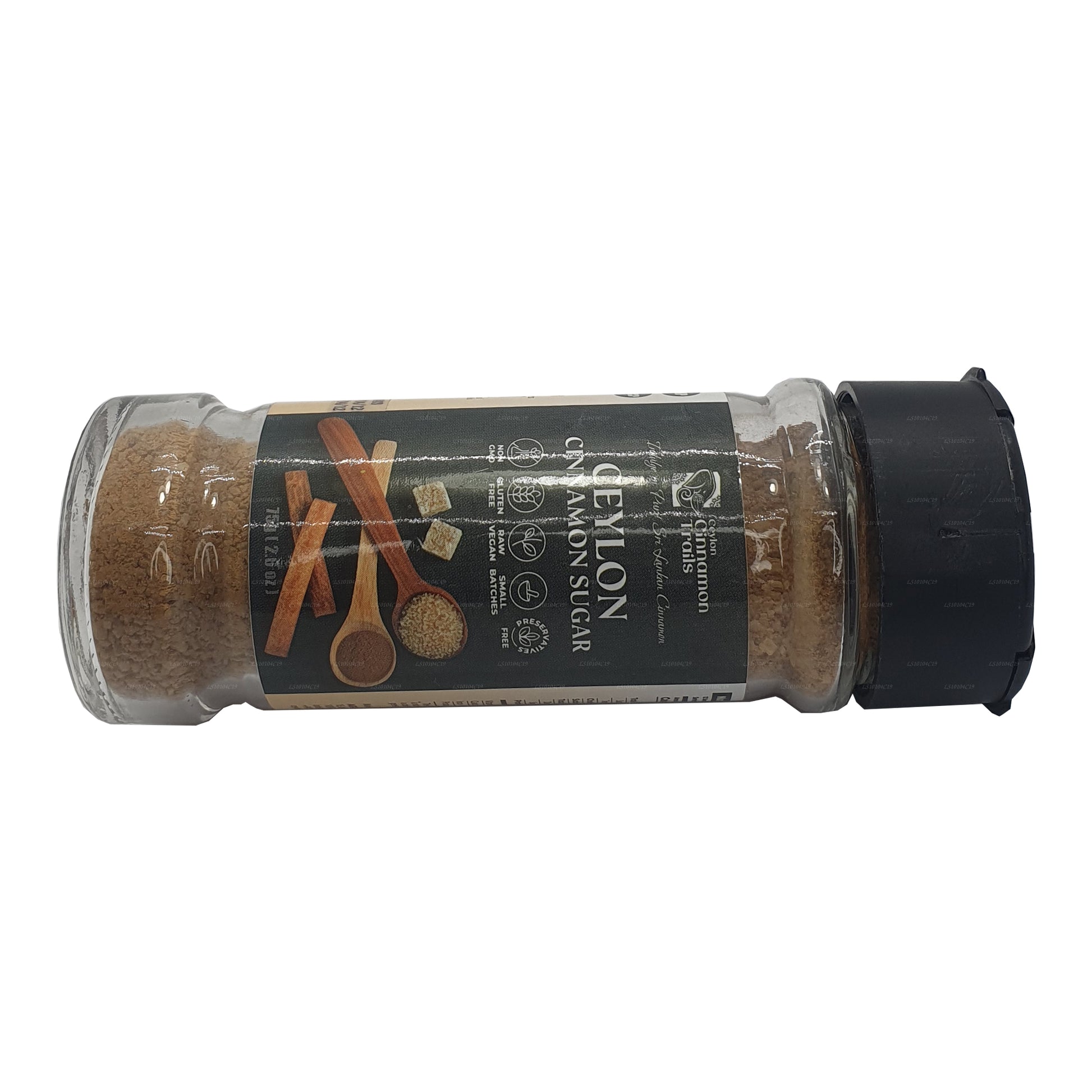 (SKU:LS10104C19)Ceylon Cinnamon Trails 肉桂糖(75 克)是糖和锡兰肉桂的和谐混合物,具有独特的甜味和略带木质味的味道。这种多功能混合物是储藏室的便捷补充,非常适合为甜味和咸味菜肴增光添彩。锡兰肉桂的潜在健康益处是额外的好处,该产品反映了这种香料的丰富传统。为您的烹饪作品增添一丝甜味和香气的理想选择