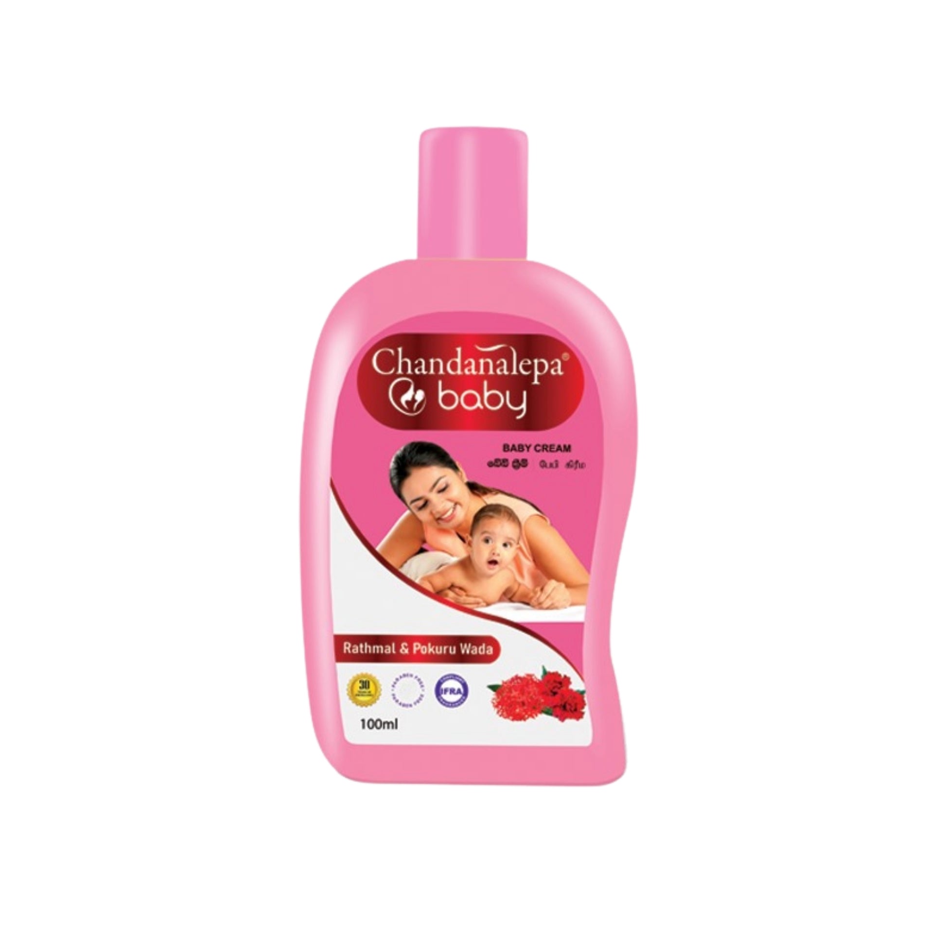 Chandanalepa Baby Rathmal & Pokuru Wada Baby Cream is a soothing and nourishing cream enriched with Rathmal (Ixora coccinea) and Pokuru Wada (Hibiscus rosa-sinensis) extracts. These natural ingredients help to hydrate and protect your baby’s delicate skin, keeping it soft and calm all day long. The cream provides gentle care, perfect for moisturizing and soothing dry or irritated skin. Regular use will leave your baby’s skin feeling nourished, smooth, and protected from the elements.