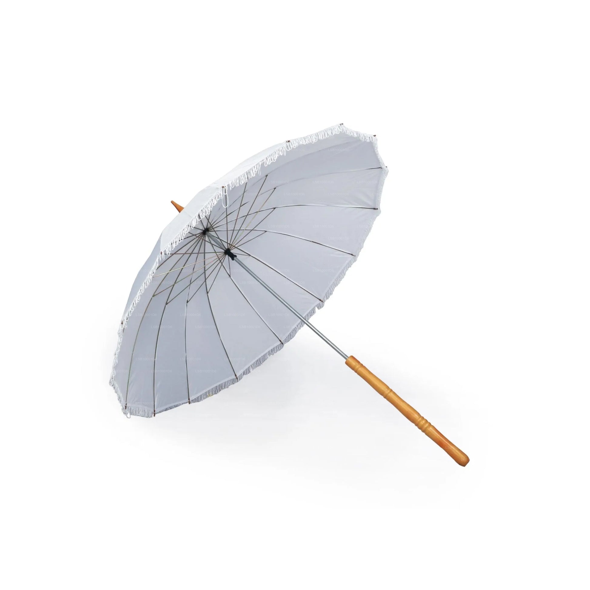 Siyarata White Pooja Muthu Kuda is a beautifully crafted ceremonial umbrella made from high-quality taffeta fabric, designed for religious and cultural occasions. Its elegant white finish, adorned with decorative details, symbolizes purity and devotion, making it ideal for temple offerings, processions, and special pooja rituals. Lightweight yet durable, this umbrella combines traditional craftsmanship with refined aesthetics, ensuring both spiritual significance and graceful presentation.