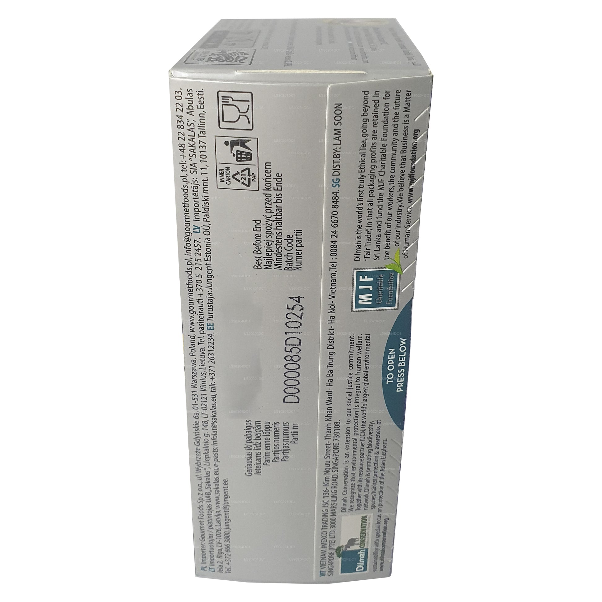 (SKU: LS90204DC1) Dilmah 的 Blueberry and Vanilla 调味茶在 40 克的包装中融合了令人愉悦的精致口味,包含 20 个茶包。这款茶将蓝莓的天然甜味与香草的舒适精华融为一体,提供和谐而芳香的体验。每口都散发出浓郁的水果和奶油味交响曲,为茶爱好者带来舒缓的享受。Dilmah 对质量的承诺确保您每杯都能享受优质的茶体验,这使这种混合物成为品尝放松和幸福时刻的完美选择
