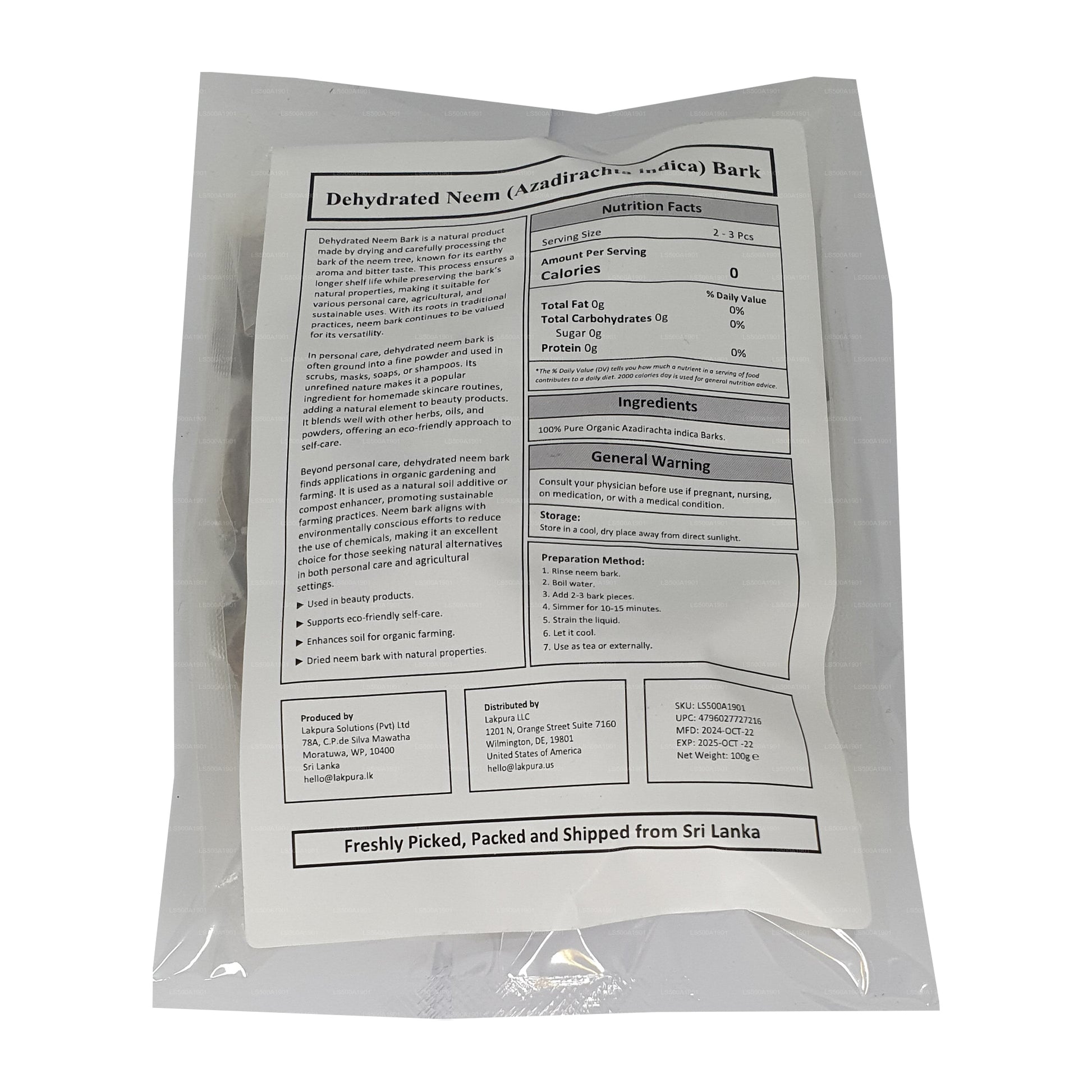 Lakpura Dehydrated Neem (Kohomba Pothu) Bark