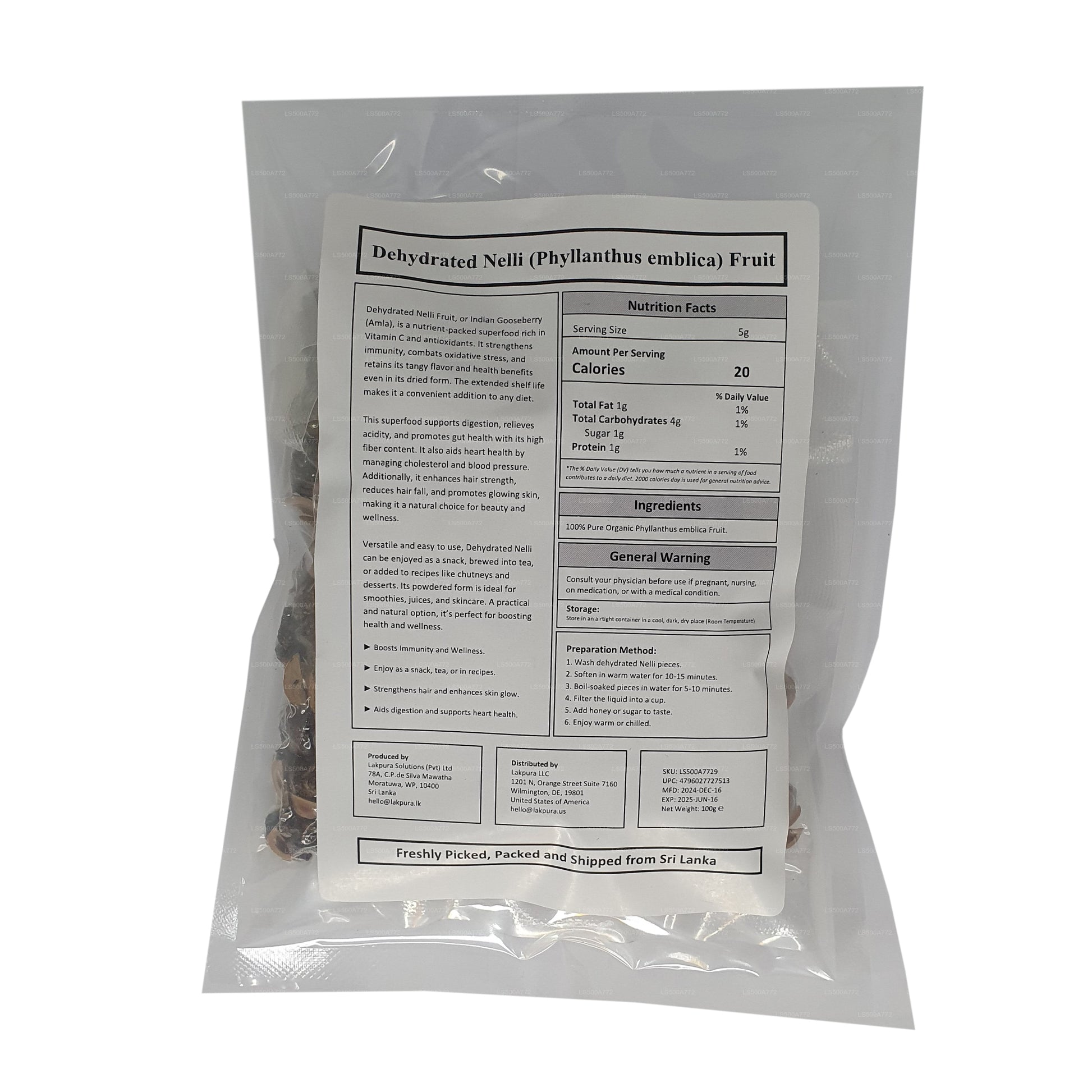 Lakpura 脱水 Nelli(Amla/Phyllanthus emblica)水果