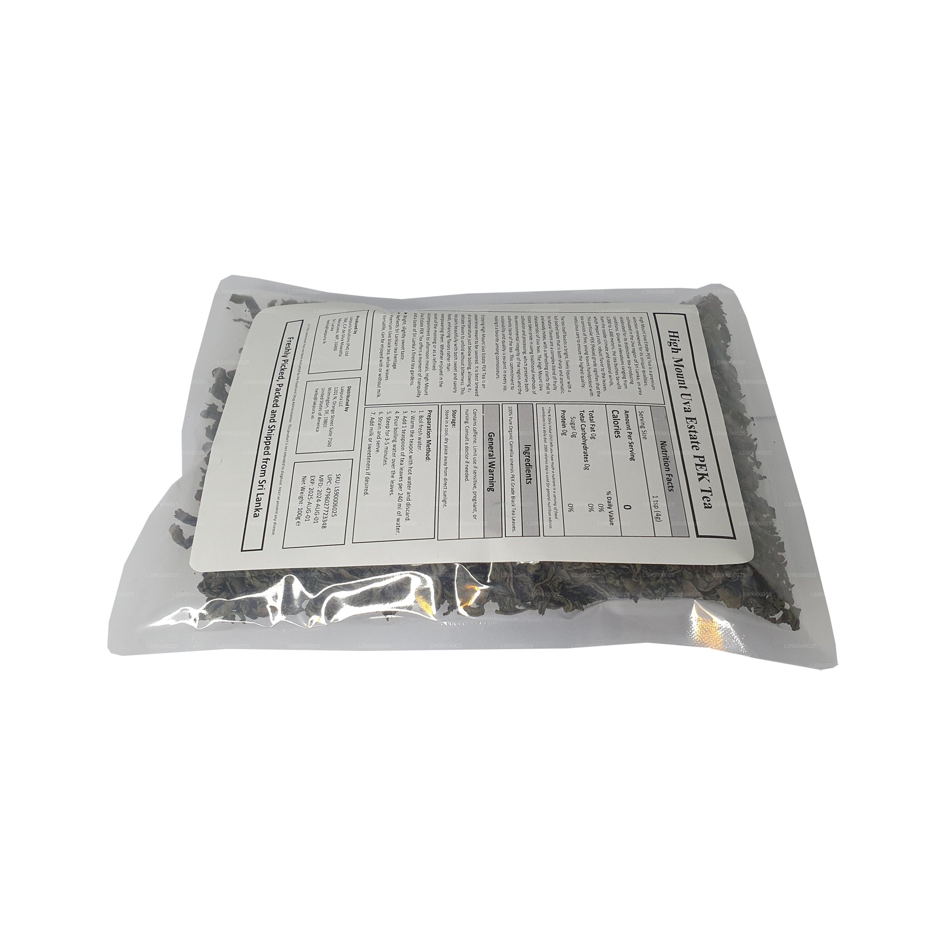 Lakpura® Uva High Mount Uva Estate PEK 茶(100 克)