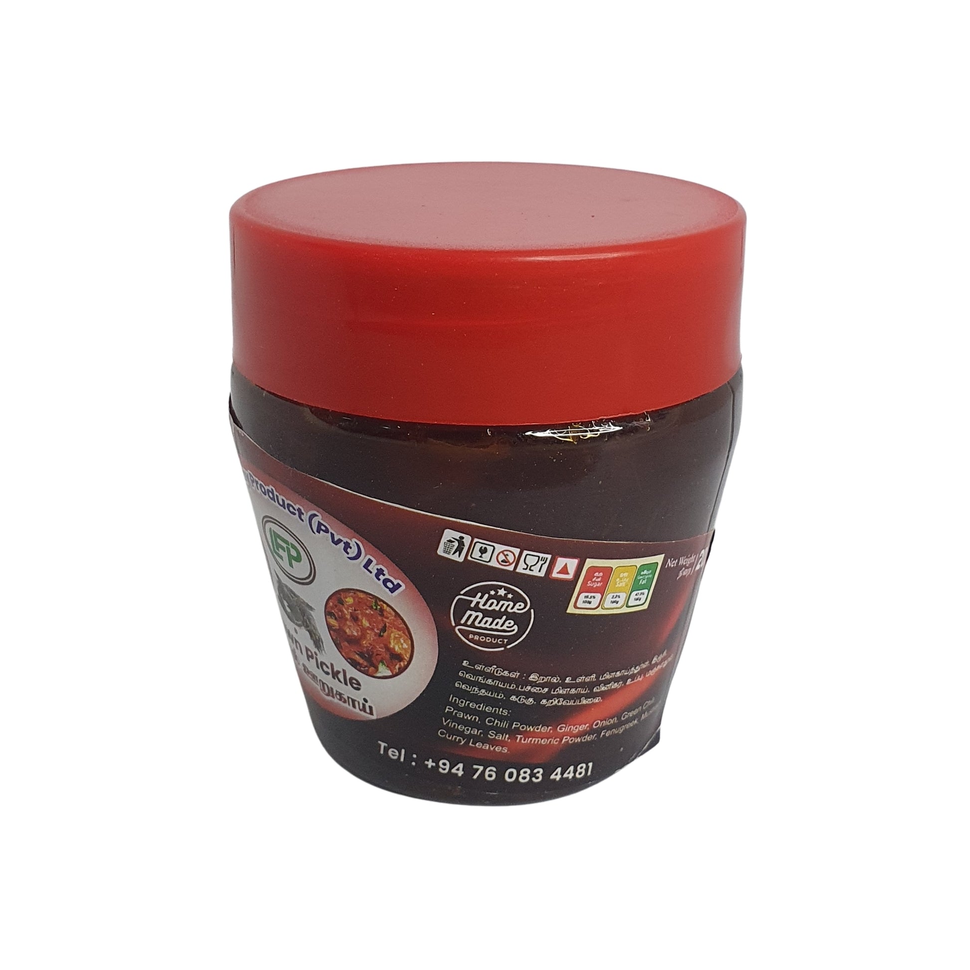Luxmy Prawn Pickle is a rich and spicy Sri Lankan seafood preserve made using succulent prawns blended with traditional spices and aromatic ingredients. This pickle is prepared by cooking prawns with chilli, garlic, ginger, curry leaves, and a variety of spices in coconut oil, then preserved with vinegar to create a bold, tangy, and deeply flavorful condiment. The combination of heat, acidity, and savory seafood flavor gives the pickle its distinctive taste that complements many Sri Lankan meals.
