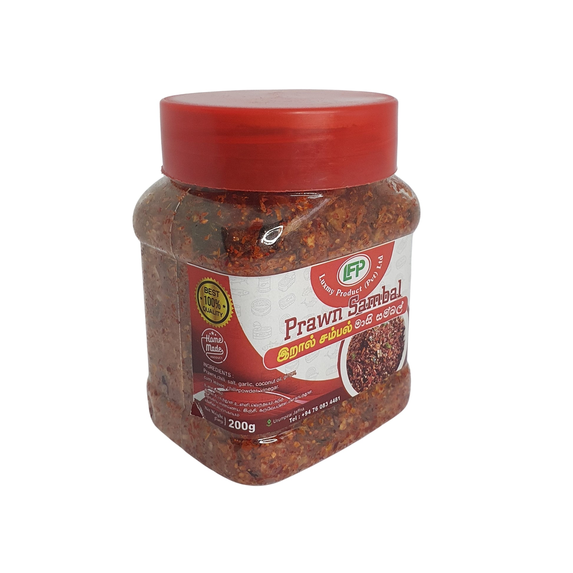 Luxmy 虾参巴是一种风味浓郁的斯里兰卡调味品,由优质虾与传统香料混合制成,带来浓烈而辛辣的口感。采用正宗配方制作,这款参巴在海鲜风味与辣味之间取得完美平衡,是米饭、面包、Hoppers、String Hoppers 及多种斯里兰卡菜肴的理想搭配。