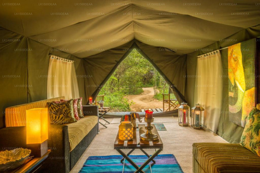 (SKU: LK1500DEAA) Mahoora is Movable Tented Safari Camps that would be pitched up on selected locations of the prime wild life parks in Sri Lanka. Sri Lanka's wildlife parks are home to the big four beasts: Elephant, Leopard, Wild Buffalo and Sloth Bear. In addition to these mammals, the reserves are vibrant with populations of deer, sambhur and birdlife. The birdlife consists of variety of endemic and migratory birds. Also found at the lakes of the park are crocodiles. Mahoora brings about a truly luxury camping experience with right royal treatment to all its guests in the wilderness with a dash of indigenous touch.