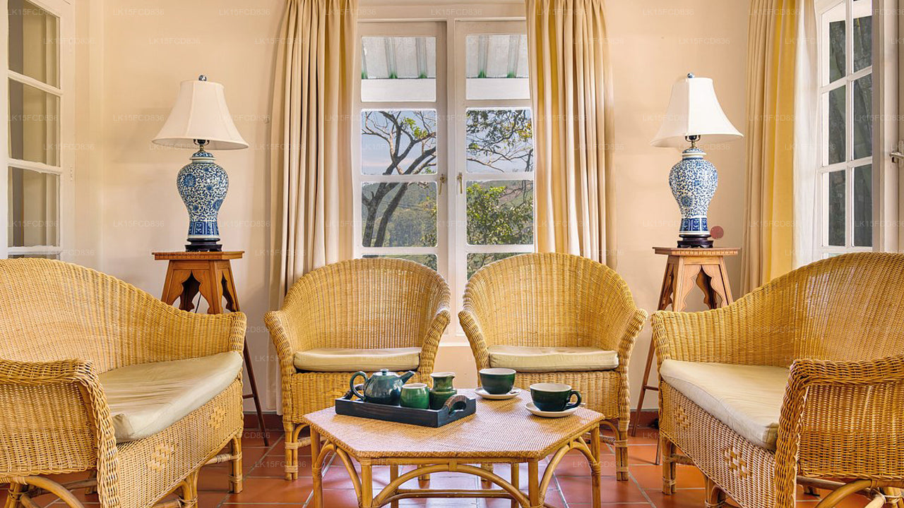 The bungalow features charming rooms furnished with classic touches and modern comfort. Each room includes cozy bedding, private bathrooms, and tasteful interiors reflecting colonial elegance, along with views of gardens or tea fields.