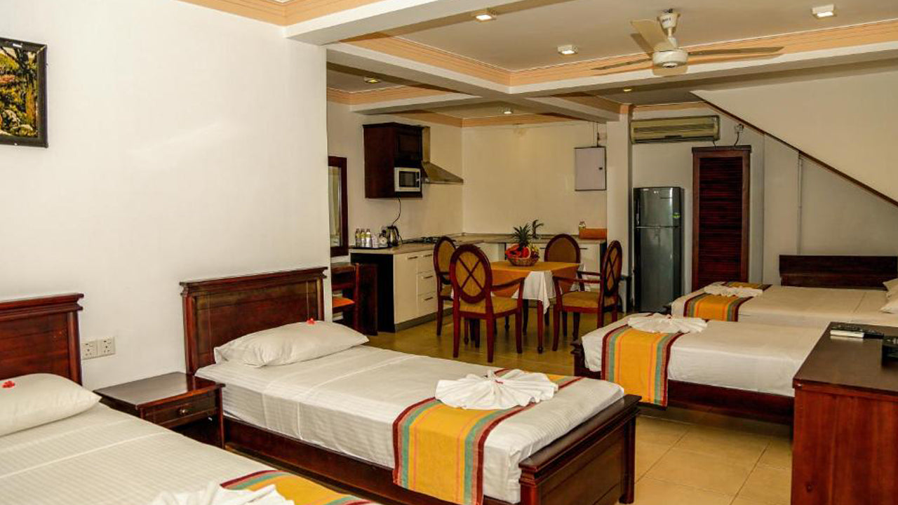 Oak Ray Serene Garden Hotel offers a range of modern accommodations, including deluxe rooms, family suites, and spacious studios. Each room features air conditioning, a private balcony, and contemporary amenities such as a minibar and flat-screen TV. Designed for comfort and relaxation, the stylish interiors create a welcoming atmosphere for families and solo travelers alike.