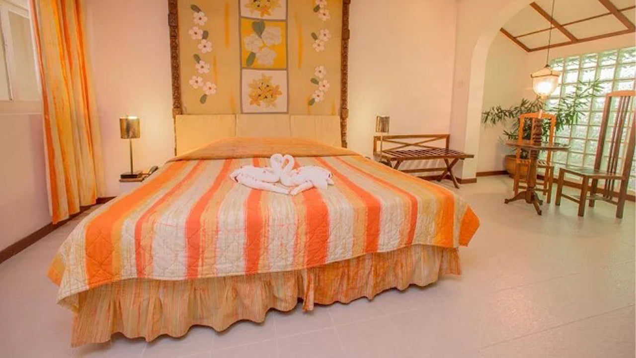 The property features a range of traditional-style cottages and rooms, thoughtfully designed to reflect local architecture. Each unit includes comfortable bedding, en-suite or attached bathrooms, ceiling fans, and private verandas or large windows overlooking gardens, fields, or forested areas.