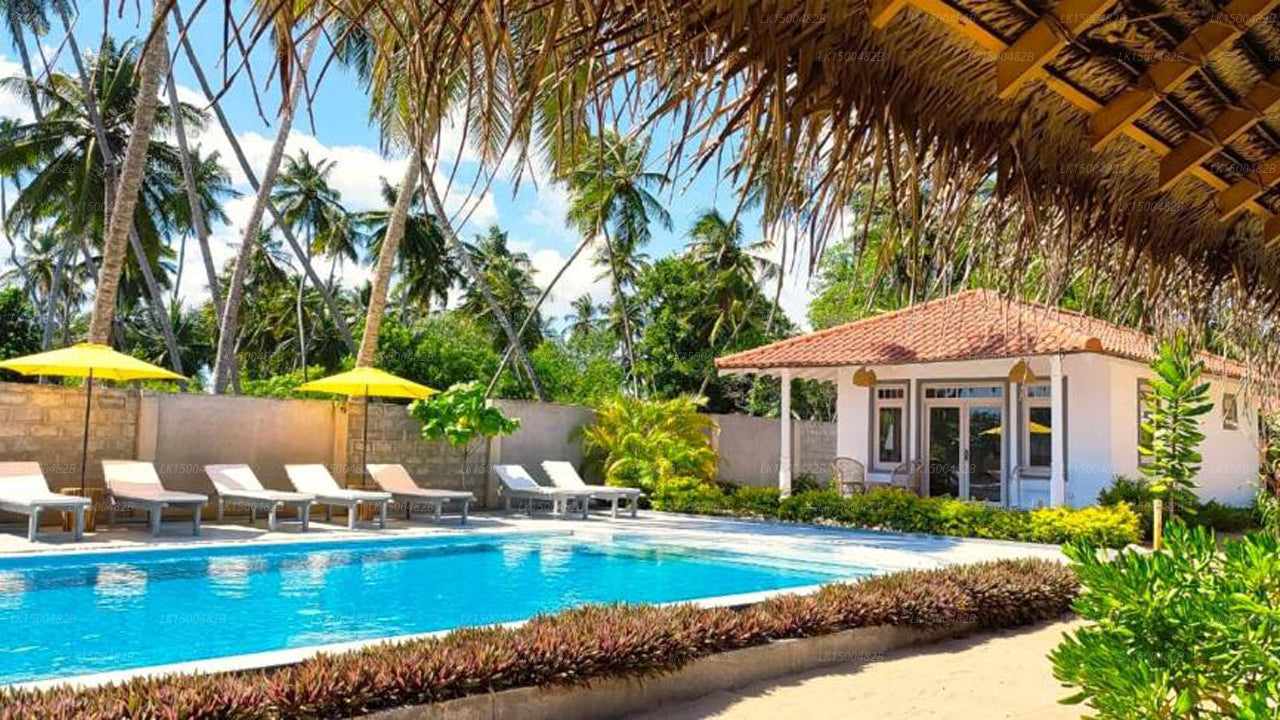 (SKU: LK1500482B) Nestled along the tranquil shores of Rekawa Beach in Tangalle, Sri Lanka, Sleeping Elephant Beach Resort offers a blissful retreat. This beachfront haven features well-appointed accommodations, a refreshing outdoor pool, and a restaurant serving delectable seafood. With a commitment to sustainability, the resort ensures a harmonious blend of modern comfort and eco-friendly practices, providing guests with a serene escape amidst the natural beauty of the region.