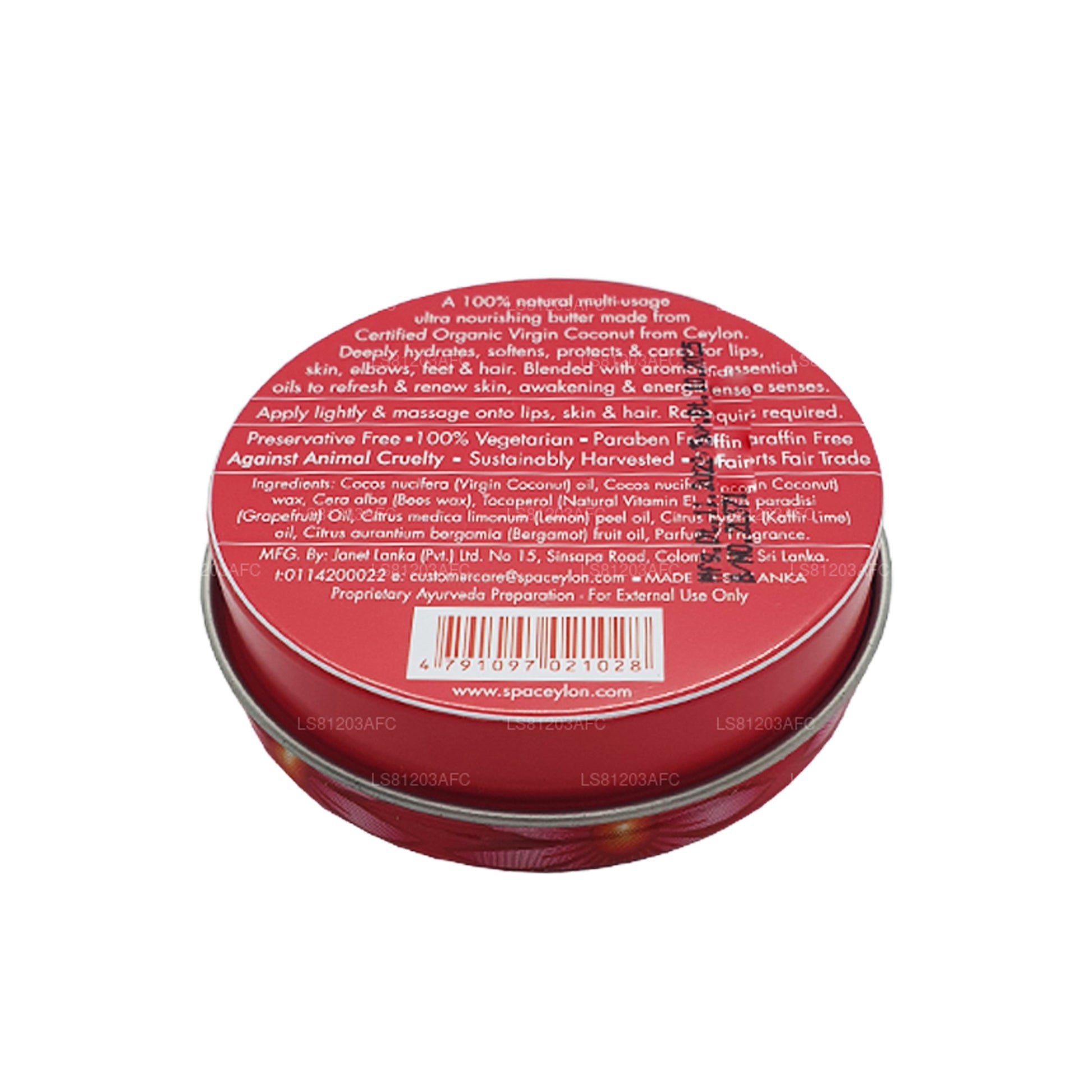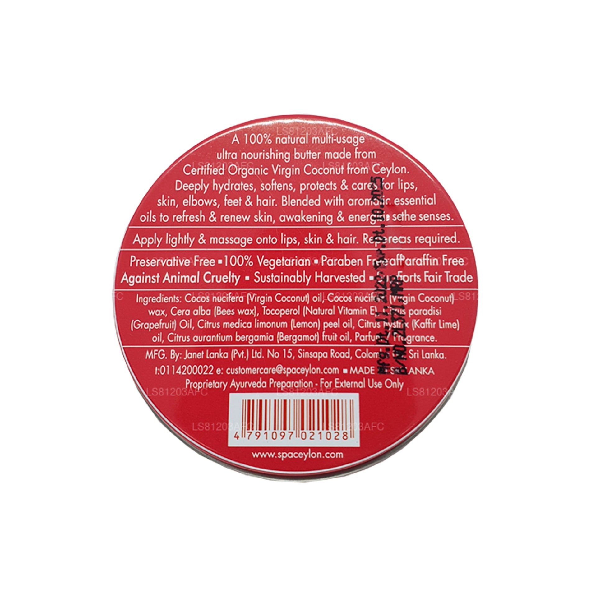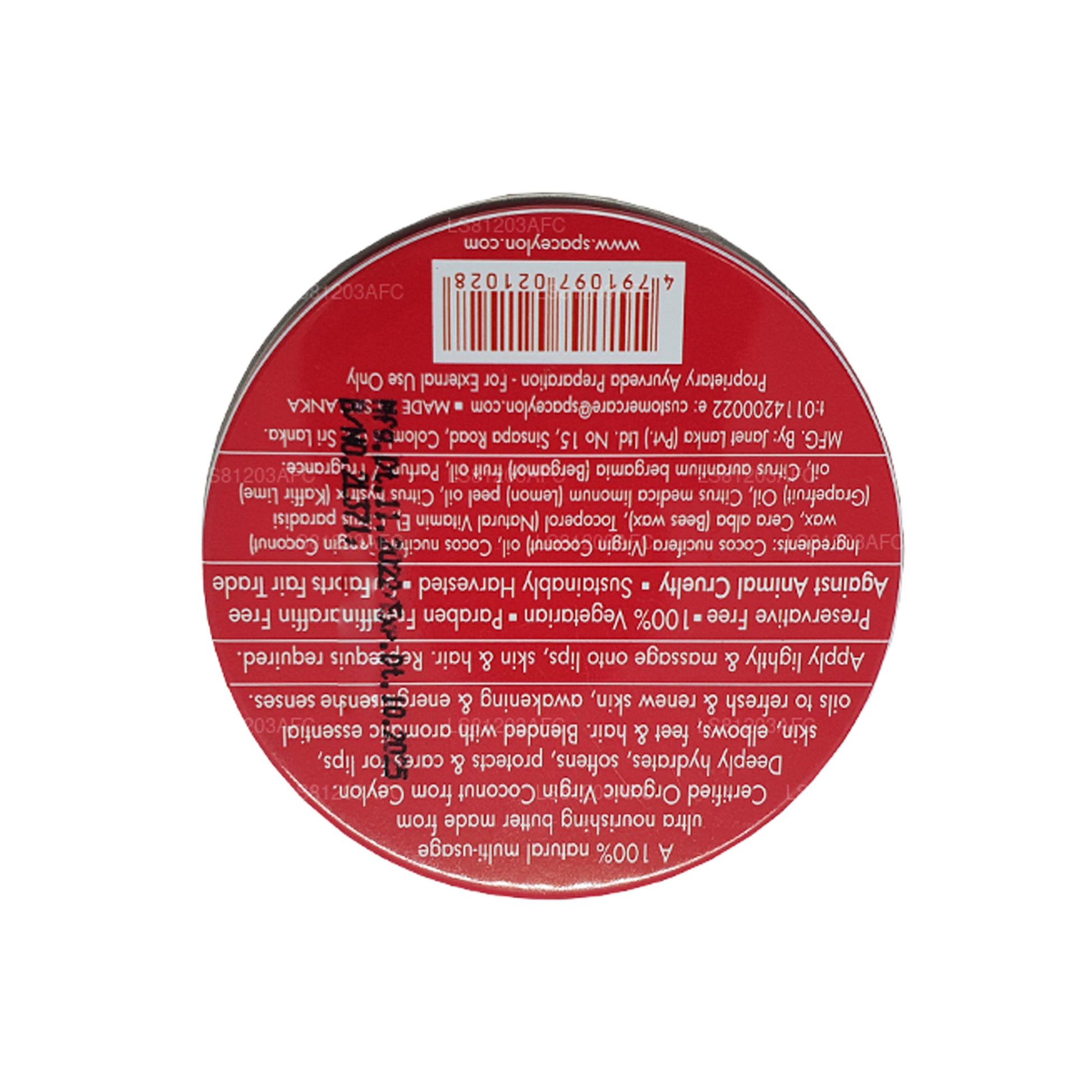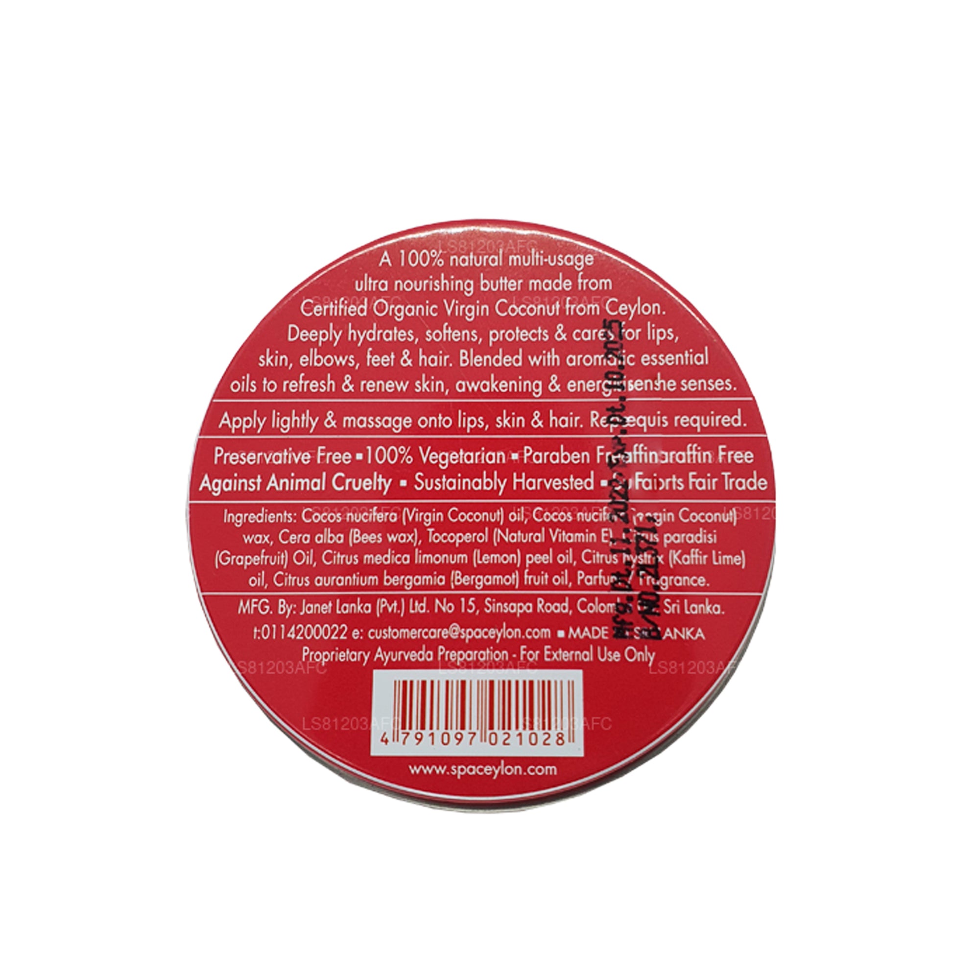 (SKU: LS81203AFC) 100% 天然多用途超滋养黄油,由来自锡兰的认证有机初榨椰子制成。深层补水、软化、保护和护理嘴唇、皮肤、肘部、脚部和头发。与芳香精油混合,使肌肤焕然一新,唤醒和激发感官活力。