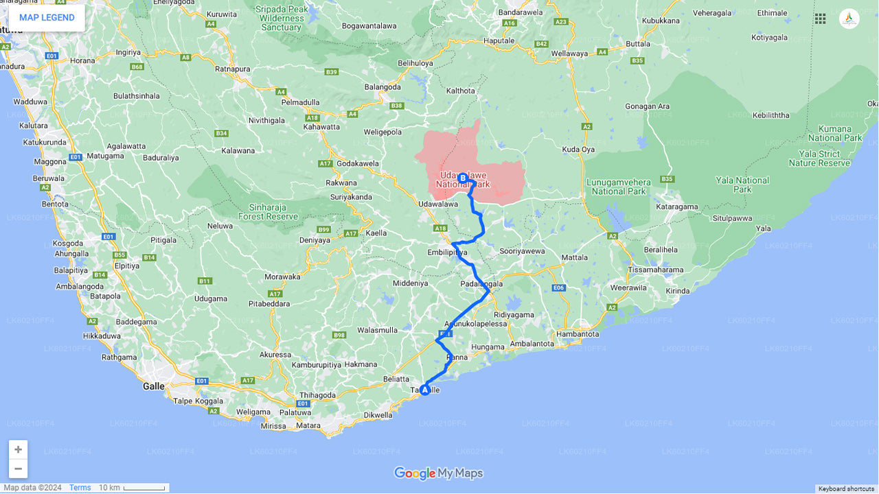 您将在下午 12 点从坦加拉开始您的旅程。你的司机将从你的酒店接你,然后开车送你去乌达瓦拉维。你将在下午 1:30 之前到达 Udawalawe。
